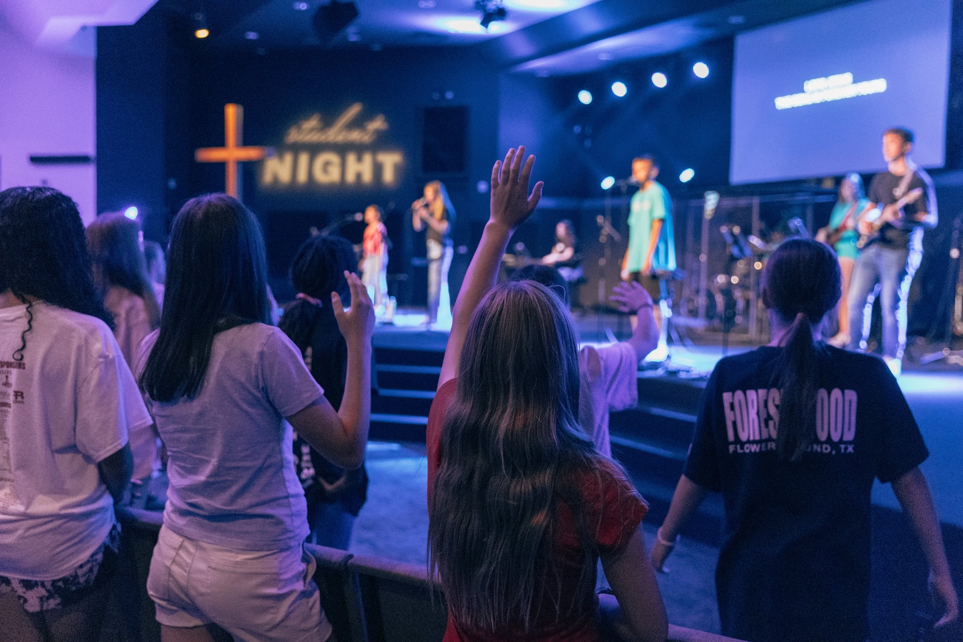 Our Student ministry is for middle school (6th–8th grade) and high school (9th–12th grade) students. At Student Night, middle school and high school students receive weekly, biblical teaching and worship in the large group gathering. In age and gender-specific groups, students talk about biblical passages and topics, learn how to grow in their spiritual life, and have space to ask for prayer or confess sin.